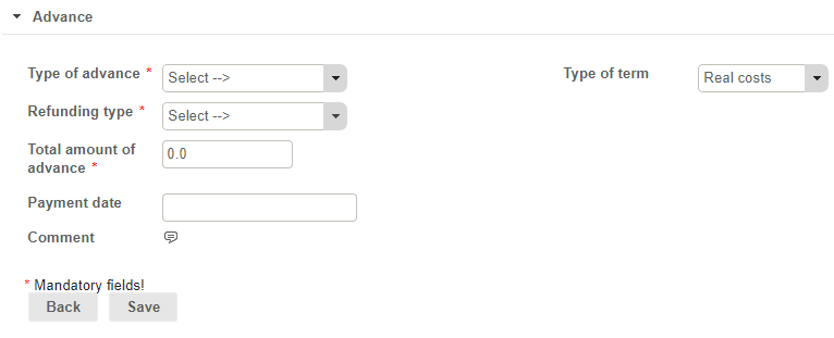 - The type of advance (configurable list)