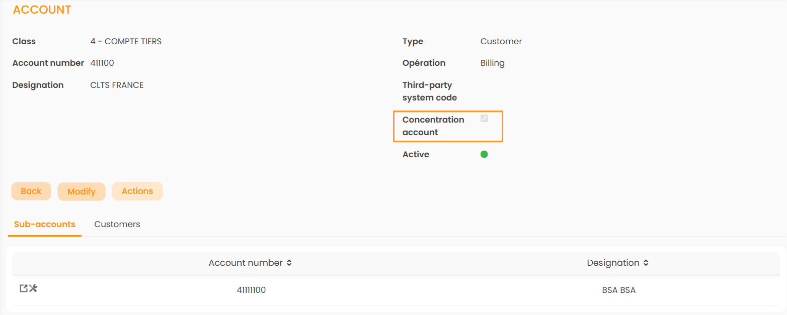 You can then choose to designate this account as the Parent Account of another account. Related subaccounts are customer or supplier auxiliary accounts, for example.