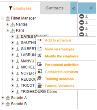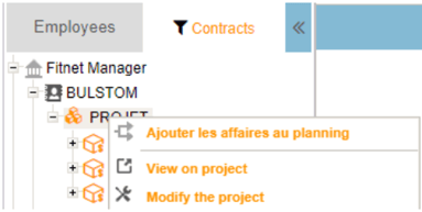 When you click on a project/contract from the Contracts tree, several actions are available :