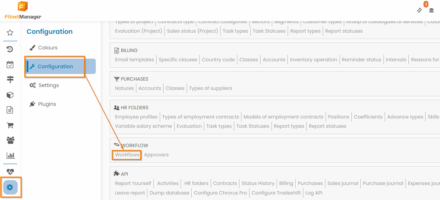 Fitnet Manager allows you to create workflows to automate validation circuits. You have access to these workflows in the Configuration > Workflow > Workflows.