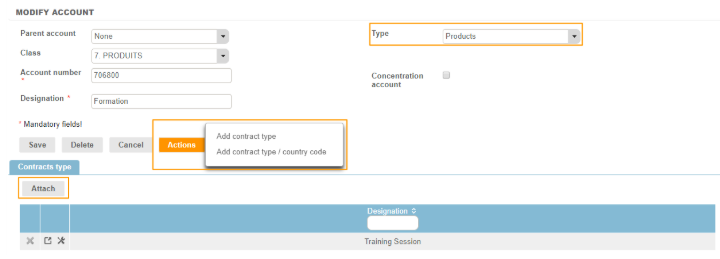 As the hierarchy level means that if the Contract category is not attached to an account, one choose the account of the type of contract: one can also choose to attach a type of contract to the accounts.