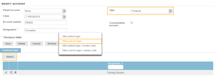 As the hierarchical level wants that if the type of service is not connected to an account, one chooses the account of the type of business: one can also choose to attach a type of contracts to the accounts.
