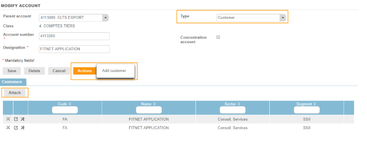 From the menu Configuration > Billing > Accounts, it is possible to add the Customer(s) attached to the account number of "Customer" type: