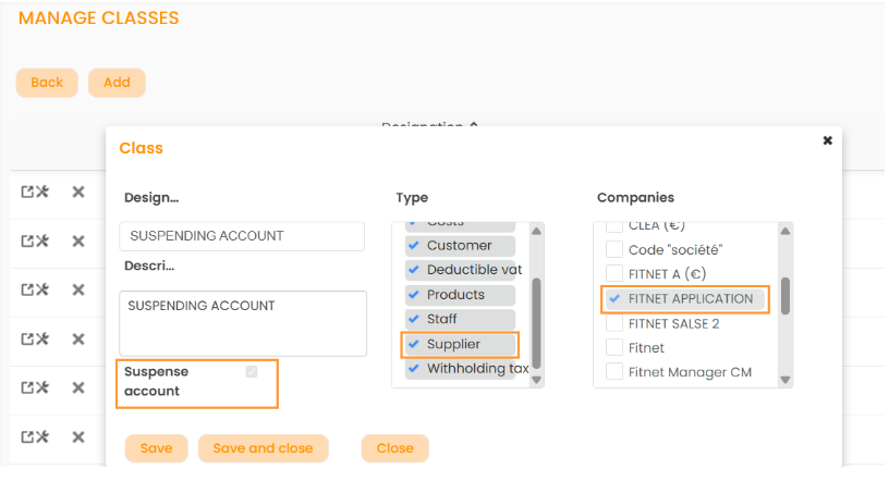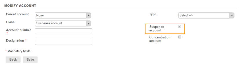 Note: it is only possible to create one suspense account by type.