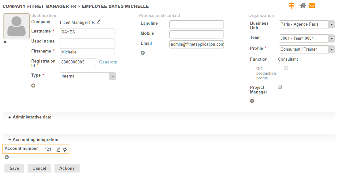 The attachment of an Employee to an account can be done directly from HR Folders > Employees > Employee sheet.