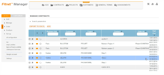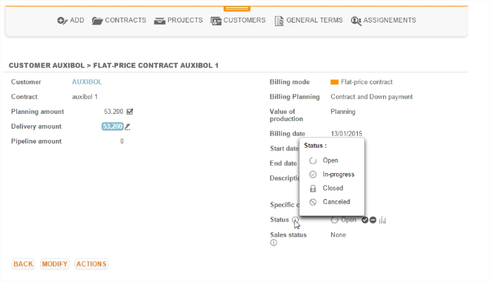 Fitnet always gives Contracts a status; it enables you to distinguish between phases: