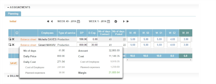 Warning : The Initial Daily Price: is unique for the whole team no distinction between resources; it could still be changed once the employee has been assigned to the contract in their timesheet by accessing the contract schedule.