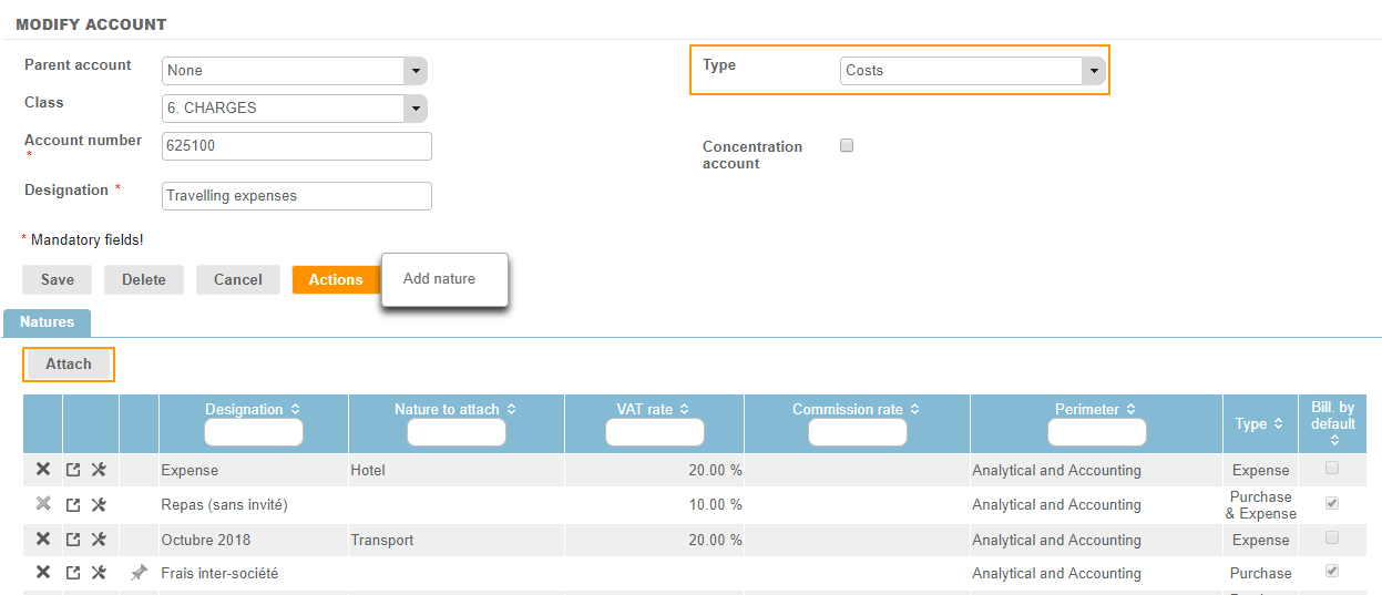 You can attach an Expense category to an account directly from the Configuration menu > Activities >Expense categories > Expense category sheet.