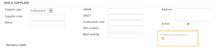 All other fields in the supplier screen are optional. It is also possible to add your own personalised properties. Simply click on the "+" and populate the property type and label that you wish to add.