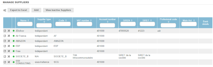 A list of suppliers whose details have already been populated can be found by clicking on the Suppliers sub-menu:
