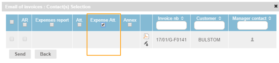 This makes it possible to send them to the customer by selecting the “Expense Att.” box when sending the invoice by e-mail: