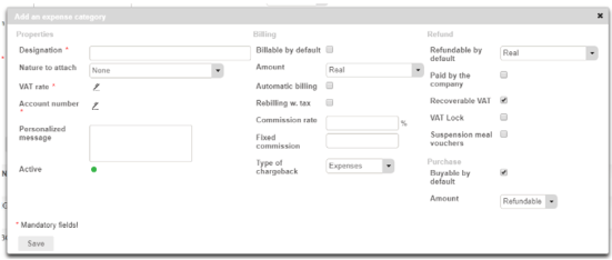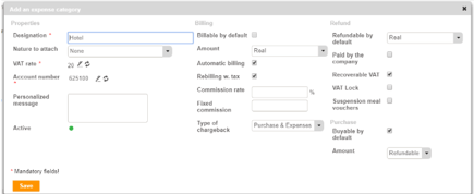 For more information about the fields in an expense category, please refer to this article.