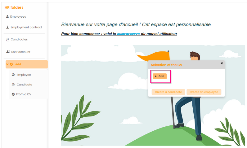 - Add the CV (PDF) > Upload> Creat an employee/candidate