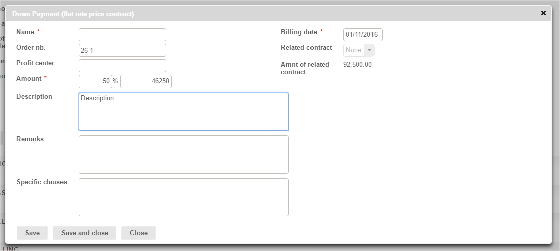- Amount: it can be filled in with numbers or % of total amount of the case