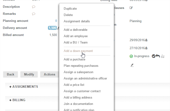 The deposit due date thus created automatically generates a proposal deposit invoice that we find: