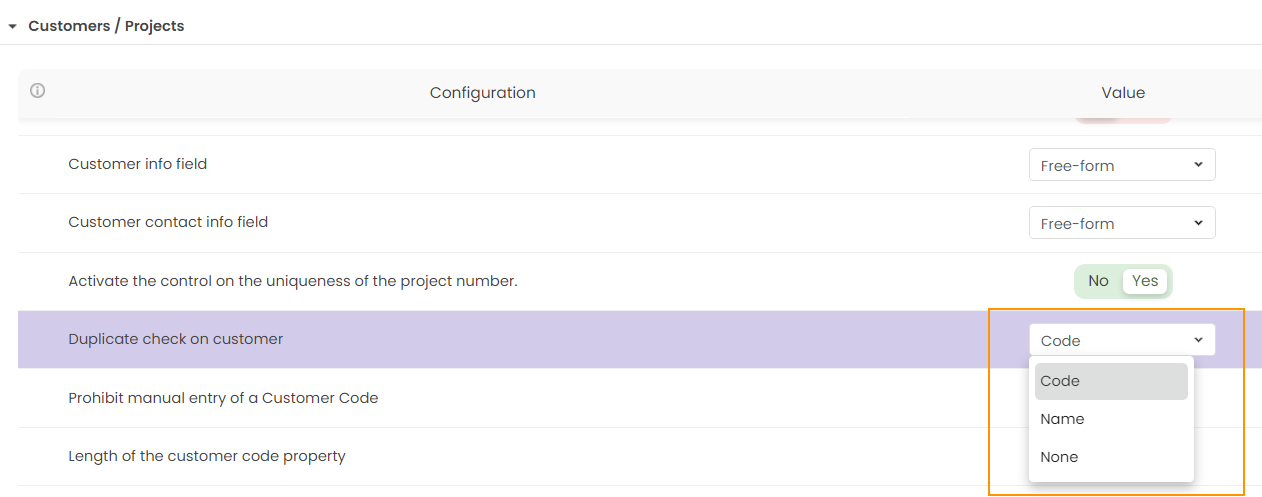 Duplicate control is a toggleable setting within the application settings: Settings > 'Contracts' Tab > 'Customers/ Projects' Panel.