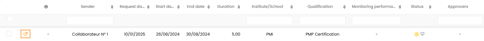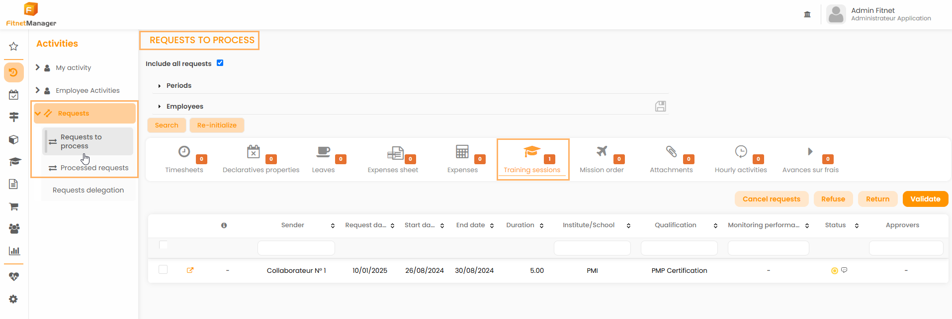 To do so, they must select the request for training in the Activities module > Requests > Requests to process or Requests already processed.