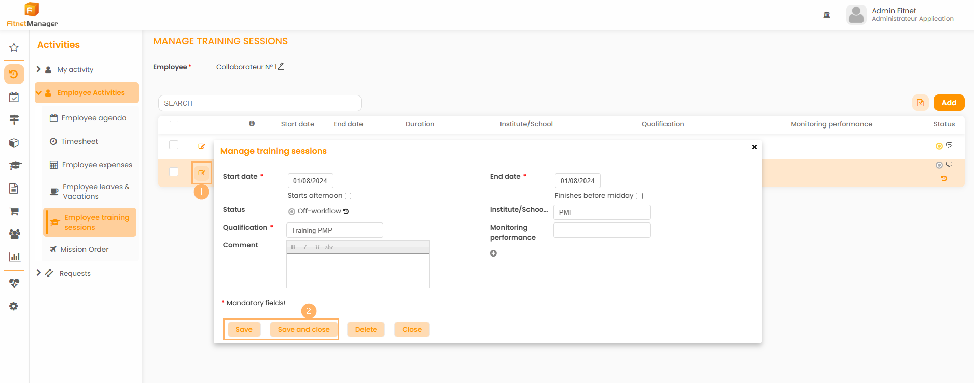 You can then edit every detail of the request for training: start/end date, qualification, comment... The only thing you can't modify is the status of the training session in the workflow.