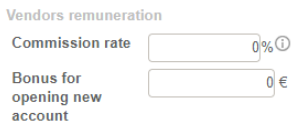 If an employee is a sales representative, the “Vendors remuneration” option appears in the employment contract. It is therefore possible to specify a Bonus for opening new account, as well as a Commission rate: