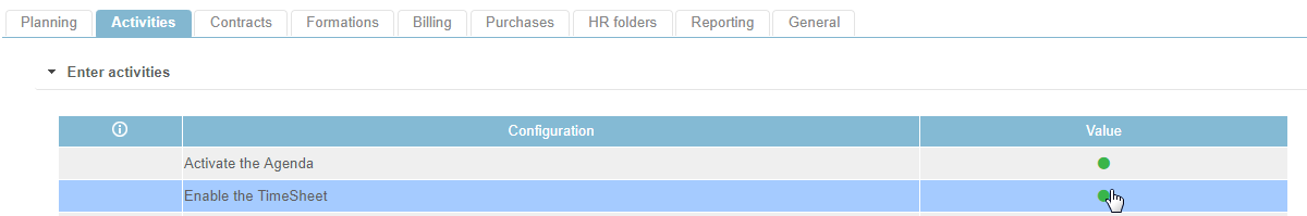 To enable the timesheet, go to the Settings > Activities tab > Enable the TimeSheet.
