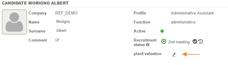 Candidate > "Modify” icon > Evaluation > Icon next to “Evaluation plan”