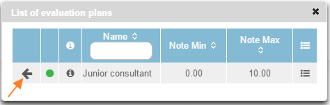 A window shall open allowing the desired evaluation plans to be chosen, by clicking on the arrow to the left of the table.