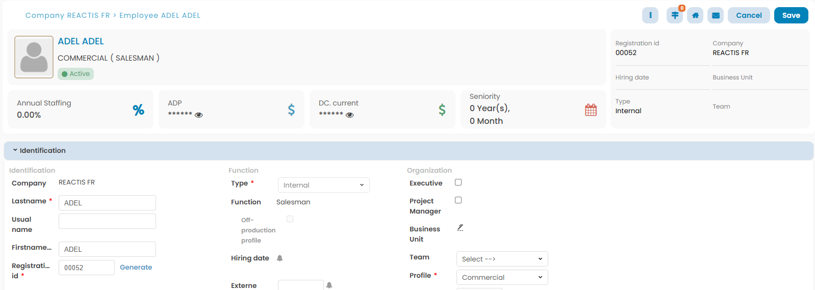 Employee with a profile with the function “Salesman”: