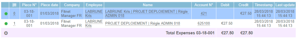 - Line "w. tax": Employee = name of Employee | Expense Note designation| Project designation| Contract designation