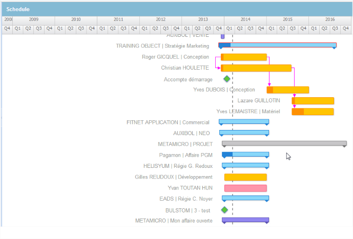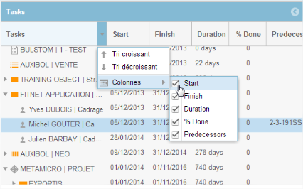 - Task Name: represented in a tree structure according to what has been defined in the Contract module. The item is displayed according to its type with the appropriate icon (project, contract, due date)
