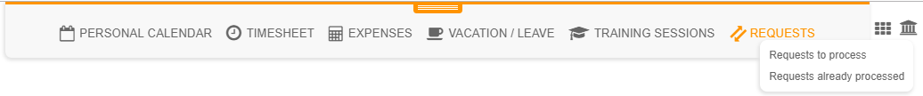 Managers, admins and employees who are designated in the validation workflow to process leave requests have access to a specific submodule: "Activities module > Requests"