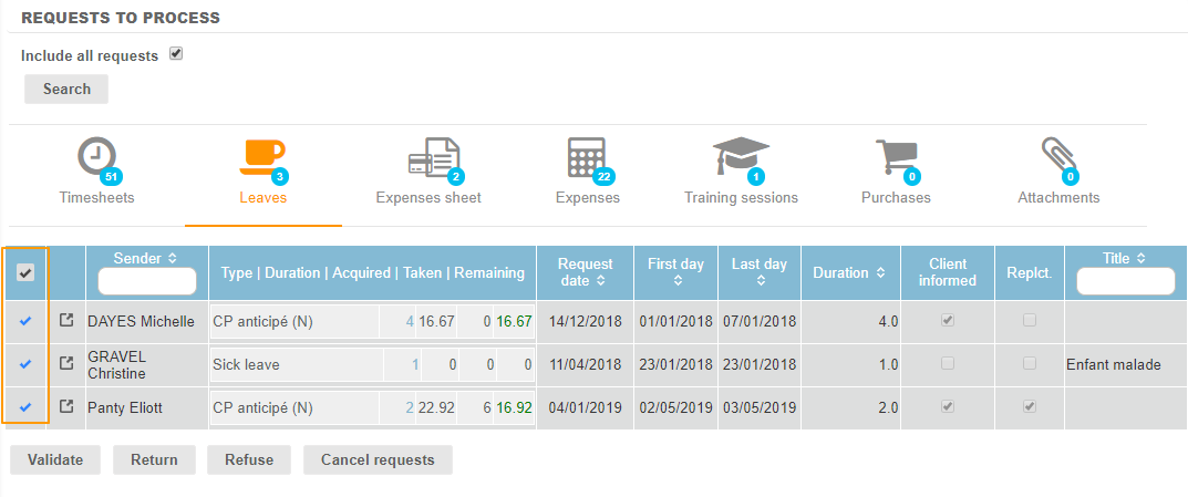 How to validate, return, refuse or cancel a leave request