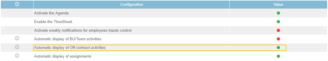 - In case an employee is assigned on half-time contract, off-contract activities are a good trick to allow him to declare a complete timesheet.