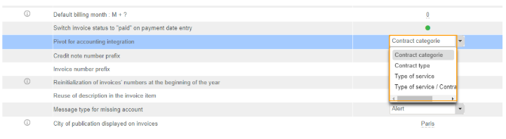 Rule: Whatever the pivot chosen, the Contract Type is the highest hierarchical level. For example, if Fitnet does not find a type of service associated with the sale, the Contract type is used for the breakdown. This is why the Contract Type becomes mandatory to fill in the contract when the accounting integration is activated.