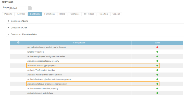 Beforehand you will thus have to activate the 2 following parameters (Settings > Contract tab > Functionalities)
