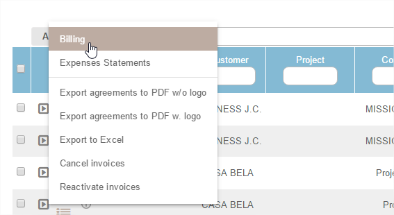Assignments achieved in Daily price, Flat-rate price, Subscription or Sales are well distinguished in the tool. They are not invoiced in the same manner.