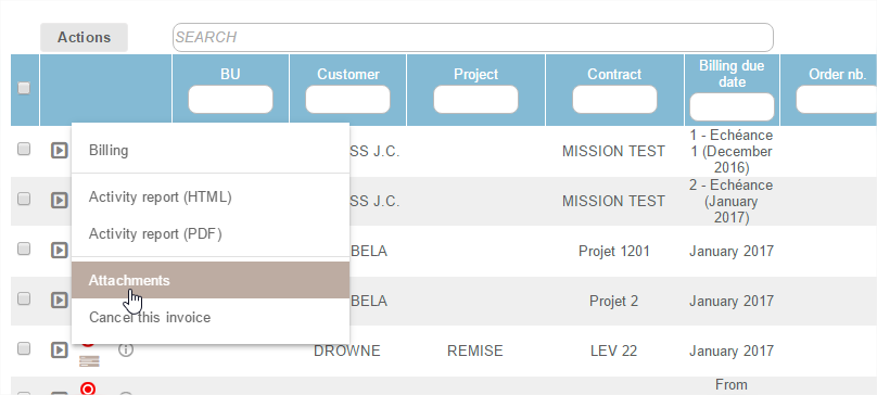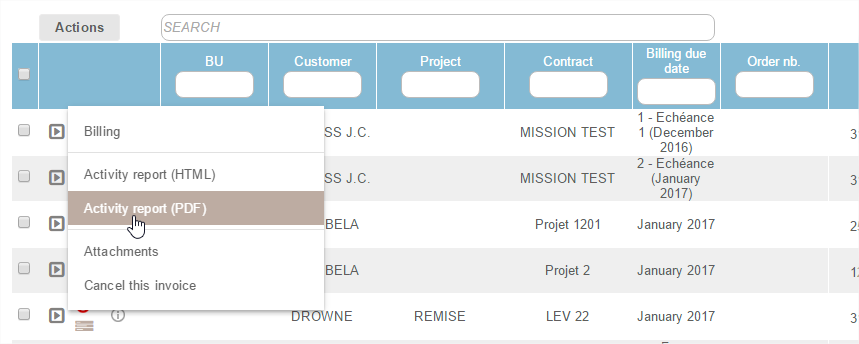 - The cancelled invoice proposal is not deleted but still kept in memory, it can be reactivated with the Actions button