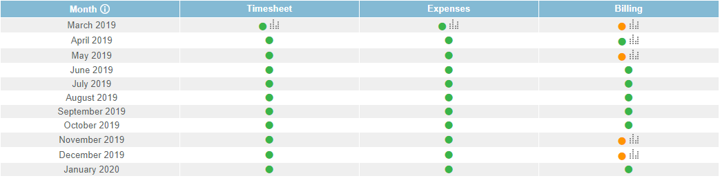- Orange dot : the entry is blocked for employees. Only administrators can still work on the month in question;