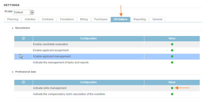 Setting > HR Folders > Activate skills management.