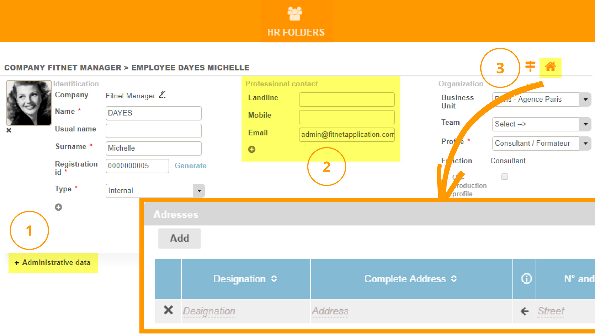 2/ The "Adresses" field has been hidden from the Employees data sheet