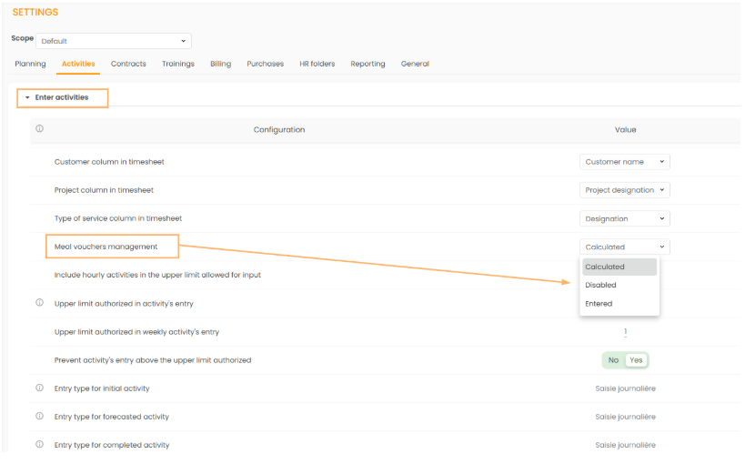 It is possible to active meal voucher management in 2 different ways :