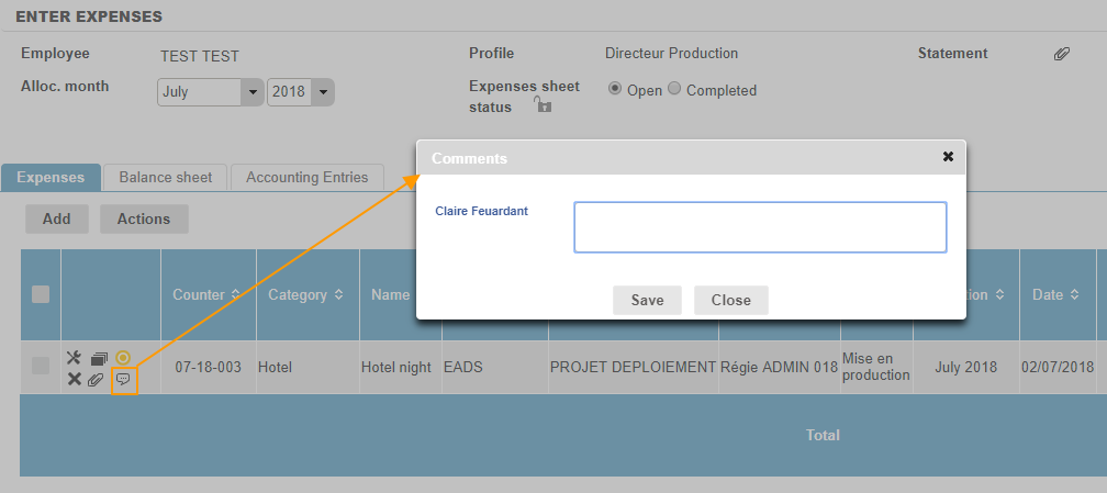 at the start of the line. A pop up will open, showing details of the expense note. The entry can be changed by the approver at this point.