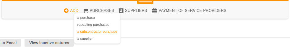 - In the Purchases module > Add a subcontractor purchase: