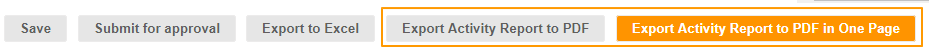 You can export the activity reports individually or on one page by clicking the Action button: