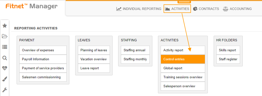 You can access it from the Reporting Module > Activities > Control entries.
