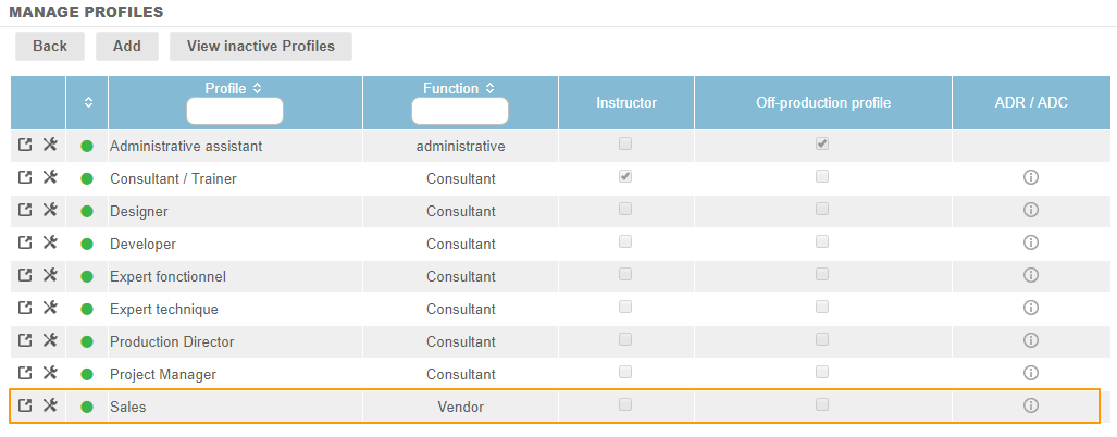 As defined in Fitnet Manager, sales representatives are employees having a profile with the “Vendor” function: