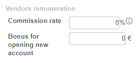 In order to define the terms for calculating commissions for sales representatives, you will need to create an employment contract. The section called “Vendors remuneration" allows you to fill in a a commission rate and a bonus for opening new account.