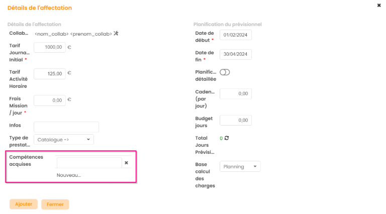 Every assignment allows also to describe the sklls that are being developed during the contract.