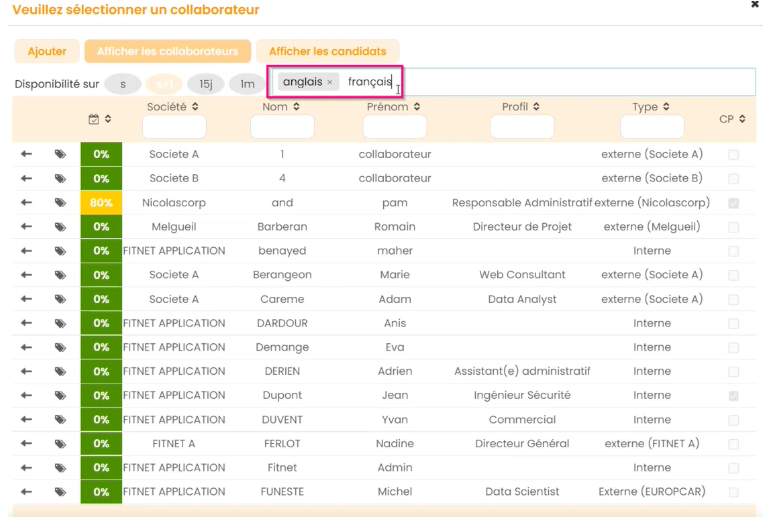 During the assignment of employees to a contract, Fitnet Manager allows to identify the employees who fit best with the help of the feature search by tags. The software does an extended research on the indexed terms in CVs, skills, history of assignments, sectors/ segments etc.