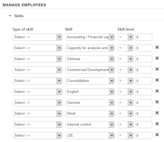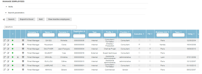 This section explains how to easily find an employee using search or skills parameters, or directly from the table: