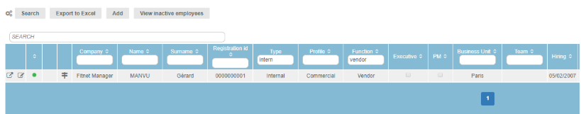 The table allows you to find an employee directly from the employee’s characteristics field. This table is modular, as are most of the tables in Fitnet Manager.